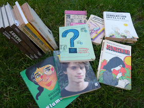 Brakuje na zdjęciu (nie mam własnego egzemplarza), ale do książek tamtych czasów zaliczam też "Czarne stopy" Seweryny Szmaglewskiej. Nigdy nie byłam harcerką i pewnie datego z taką zazdrością czytałam o przygodach Czarnych Stóp...